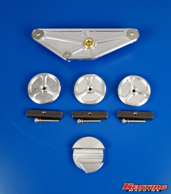 Fits 2003 and up Cummins 5.9L & 6.7L engine blocks. Kit includes 3 billet side freeze plugs, 1 rear freeze plug featuring 1/2″ npt port supplied with brass block off plug, and 1 front freeze plug. See pictures and choose between the street version of the front freeze plug that is held in and works with the stock fan or the race version 2 bolt which won’t work with the stock fan. Stainless bolts,o-rings and hardware to mount and seal plugs is included. Solid steel t-bars on the side plugs have an angle cut to match 6.7L blocks which have a matching angle in the casting inside the water passage. This means the t-bars will need to be installed vertically with the angle on the bar turned to match the angle inside the block. Failure to do this pulls the 6mm bolt at an angle which will make it not seal properly on the copper washer and possibly cause it to leak. The t-bar can be turned around to the flat side for older blocks. Call us with any questions.