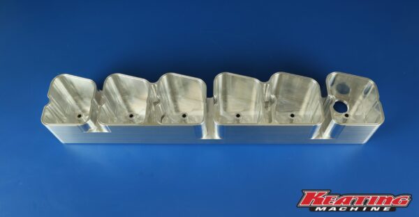 3.75″ extra tall one piece billet valve cover fits 5.9L Cummins 12 valve. Will not fit under stock cowls. Notched to fit over stock injection lines. We also have non-notched valve covers for engines with aftermarket injection lines that go over the top or around the valve cover. 1/2″ taller than our regular billet covers which are already taller than stock covers. Clears most all aftermarket studs. Also acts as a girdle for the rocker pedestals to help stabilize them when using high spring pressures and rpm. Engraved with Keating Machine logo on top. Contact us before ordering if you want a valve cover without engraving or custom engraved. Sealed with individual o-rings to head. Comes with one -12AN port in the top of the valve cover unless otherwise requested.
