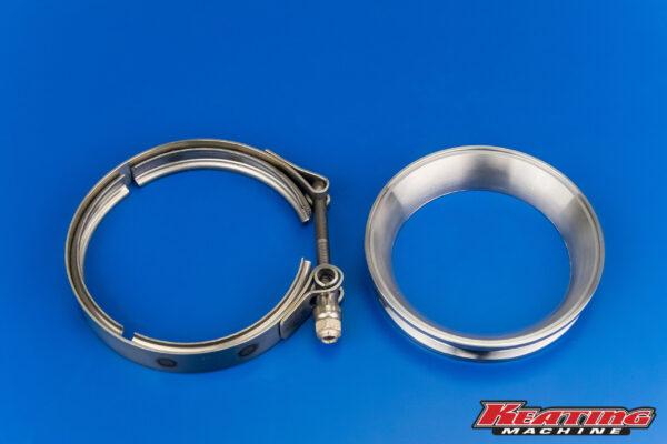 HX40 Down Pipe Exhaust V-band Flange and Clamp. Made to fit 4″ 16ga tube. Has recess to pilot mating tube for ease of welding. Flange CNC machined in Clinton,Tn. from steel. Supplied with USA made clamp.