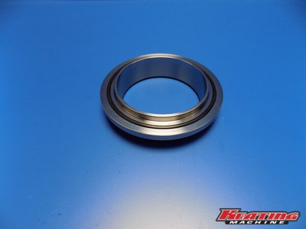 S400 air outlet v-band flange tapered to 16ga tube. These measure 4.21″ total outside diameter. CNC machined in house. Now made with lip to pilot into the compressor housing. Has o-ring to seal to compressor cover. Shown with compressor housing which is not included. All of these use our 3.5″ V-band clamp whose link is below. https://keatingmachine.com/product/s400-3-5-v-band-clamp/
